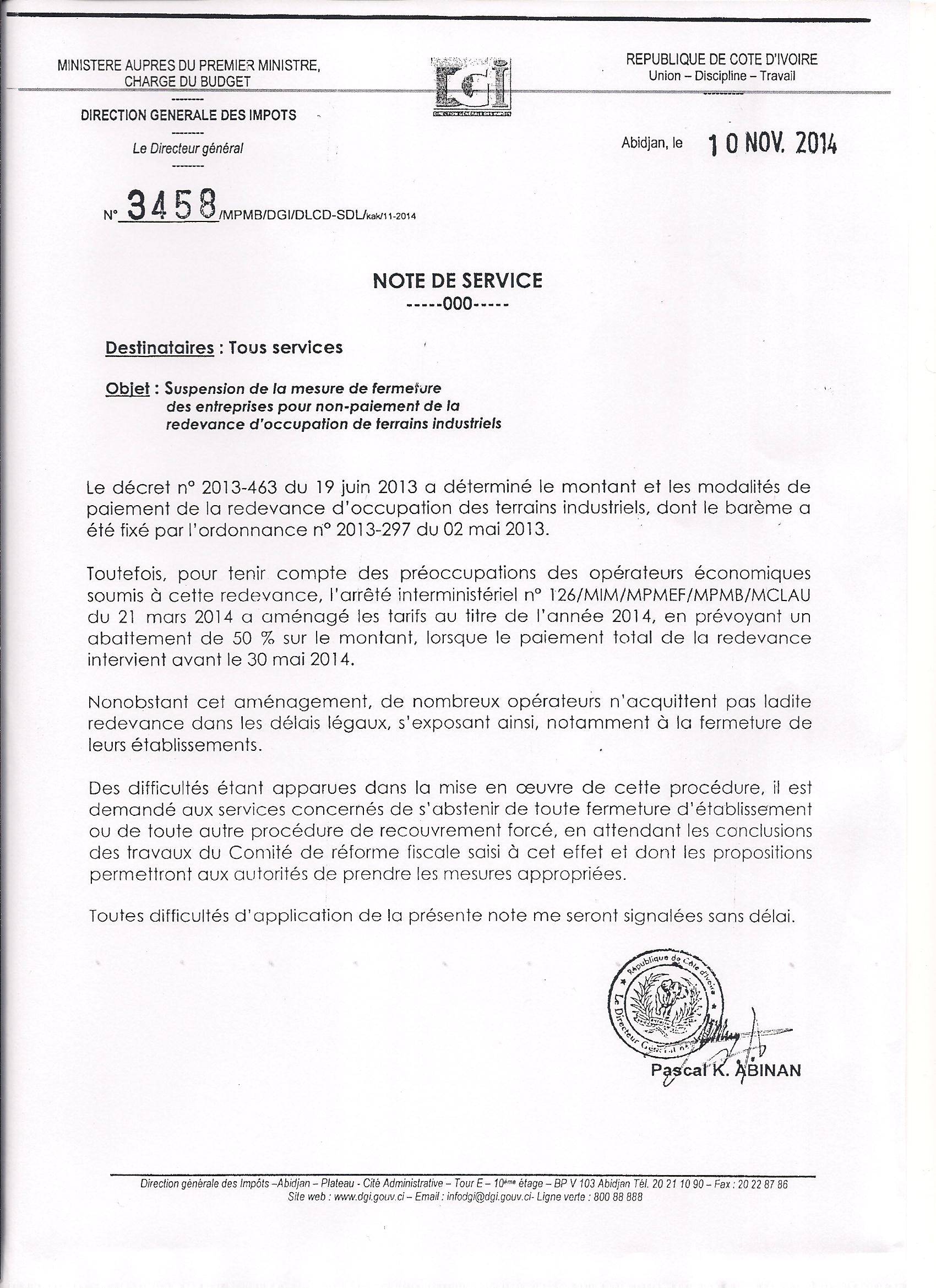 Dgi : suspension de fermeture d'entreprises pour non paiement des redevances