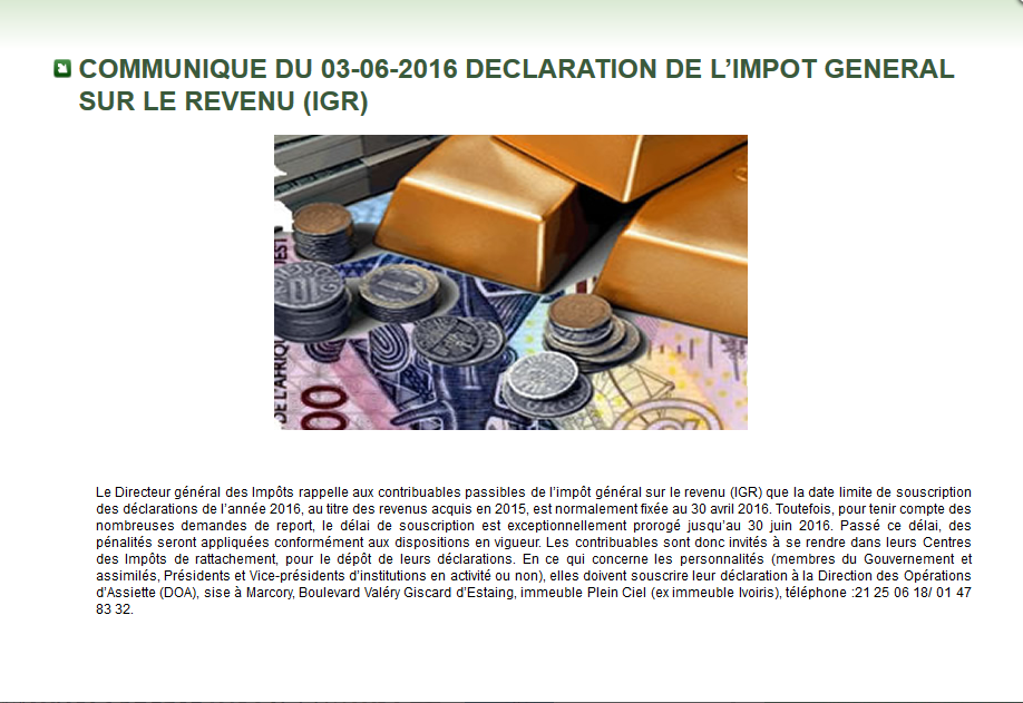 Dernier délai de souscription de la déclaration de l’impôt général sur le revenu(IGR)