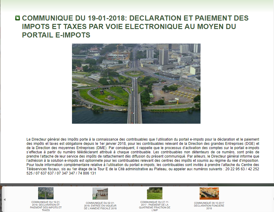 Déclaration et paiement des Impôts et taxes obligatoire par voie électronique à travers le portail e-impôts