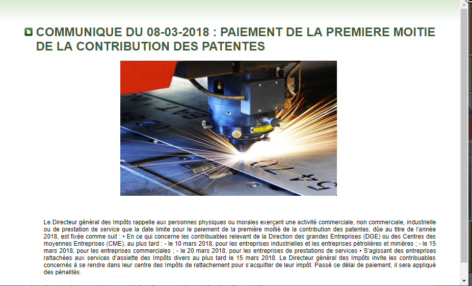 Paiement de la deuxième moitié de la contribution des patentes au titre de l’ann...