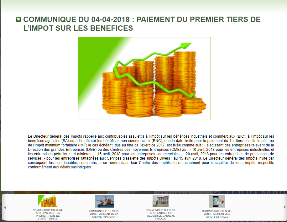 Paiement du premier tiers de l’Impôt sur les bénéfices