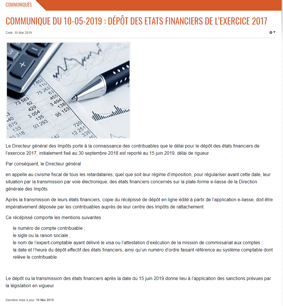 Délai pour le dépôt des états financiers de l’exercice 2017