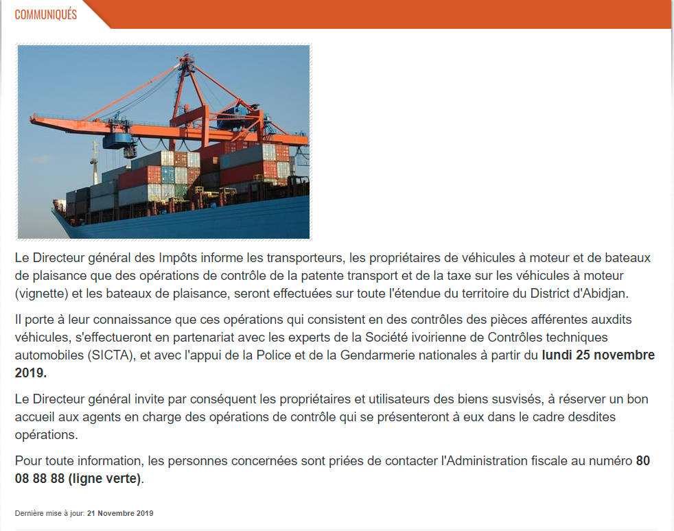 Contrôle de la patente transport et de la taxe sur les véhicules à moteur
