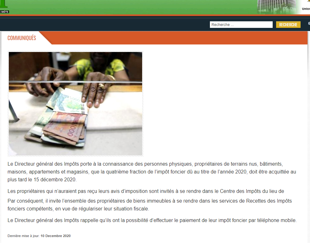 Date limite du paiement de la 4e fraction de l’impôt foncier dû au titre de l’année 2020