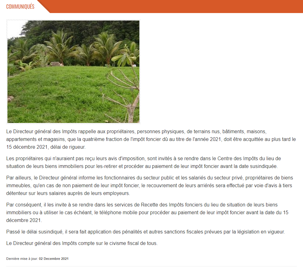 Délai de paiement de la première fraction de l’impôt foncier de terrains nus, bâ...