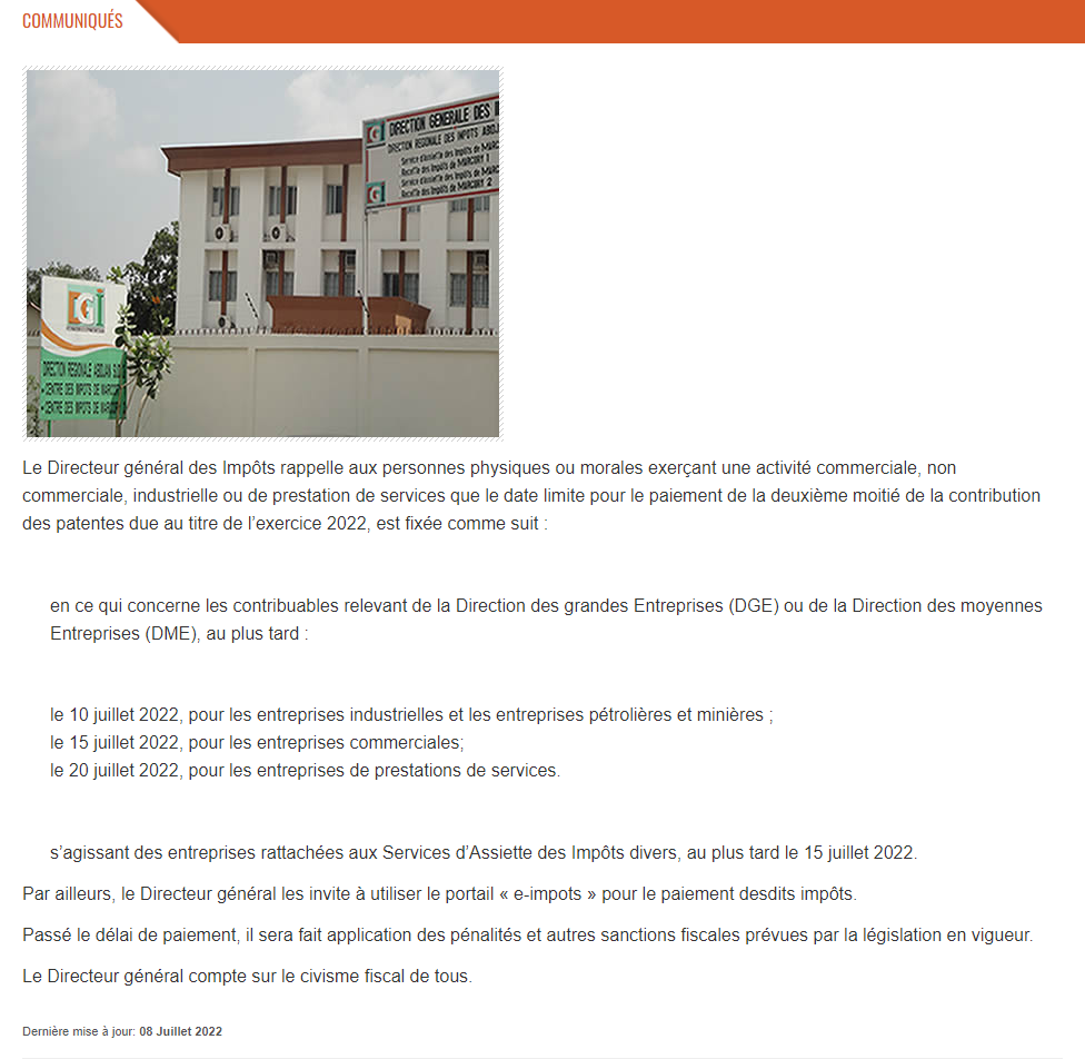 Paiement du deuxième tiers de l’Impôt sur les bénéfices
