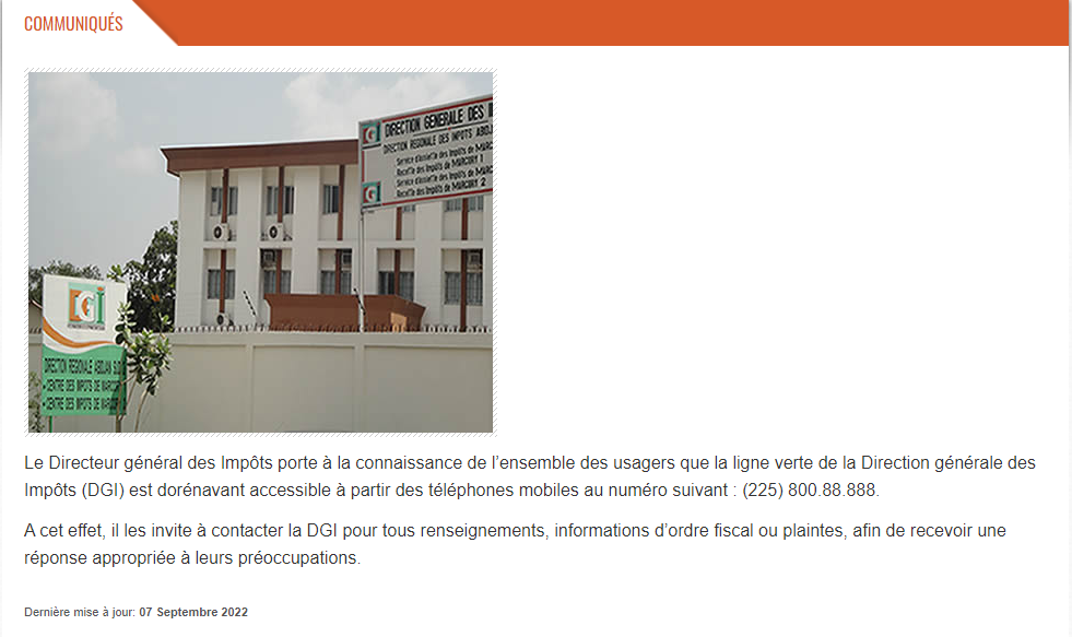 Accessibilité de la ligne verte de la direction générale des impôts à partir des téléphones mobiles